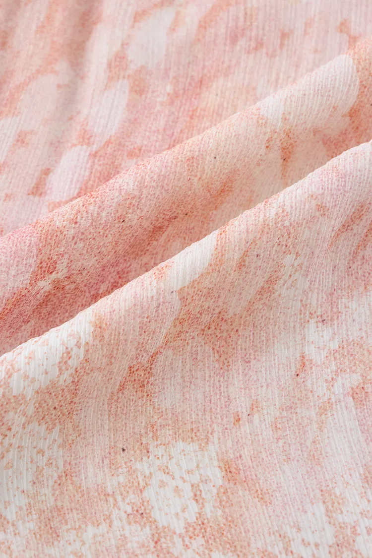 Arianna Hand Painted Flora Print Long Sleeve Dress in Crinkled Rayon
