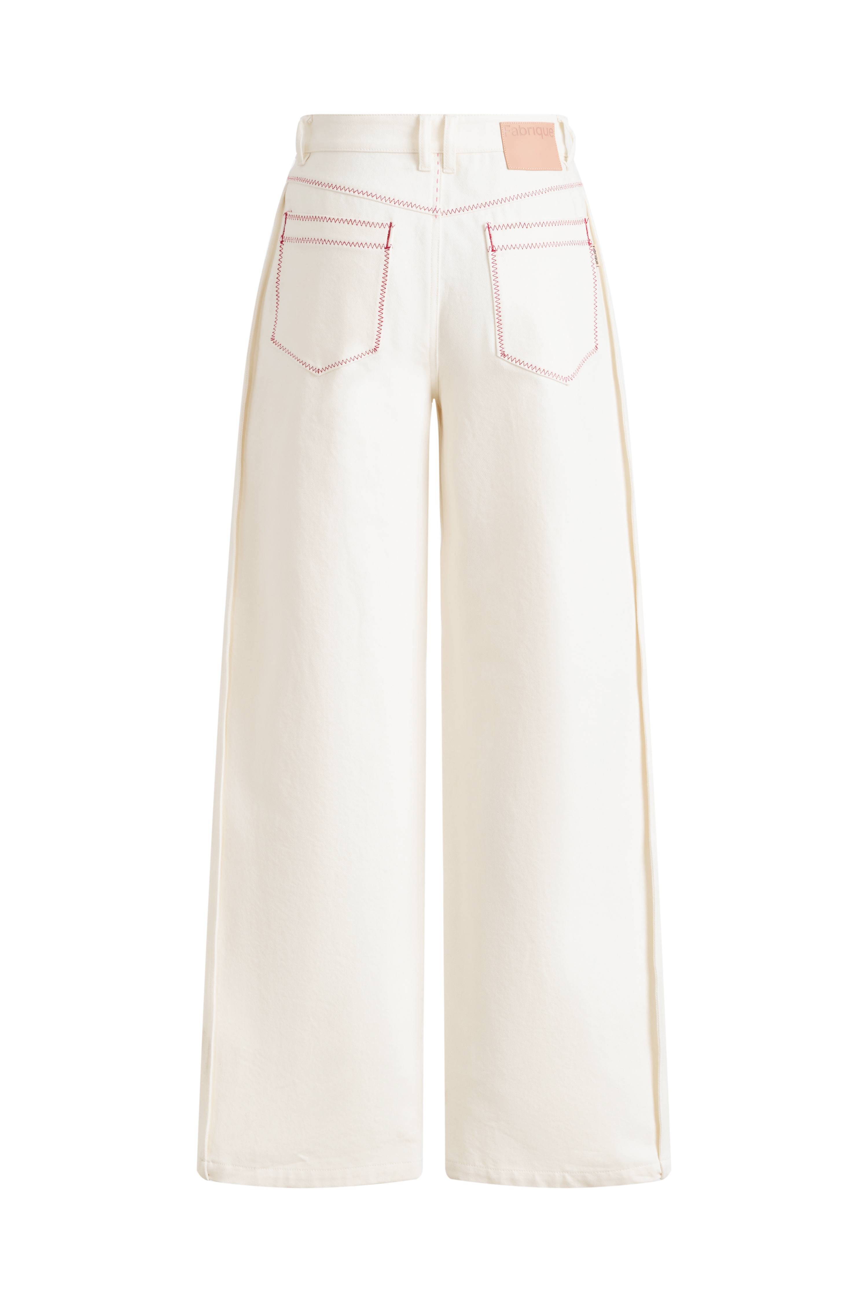 Genevieve Color Blocked White Jeans in Cotton Denim