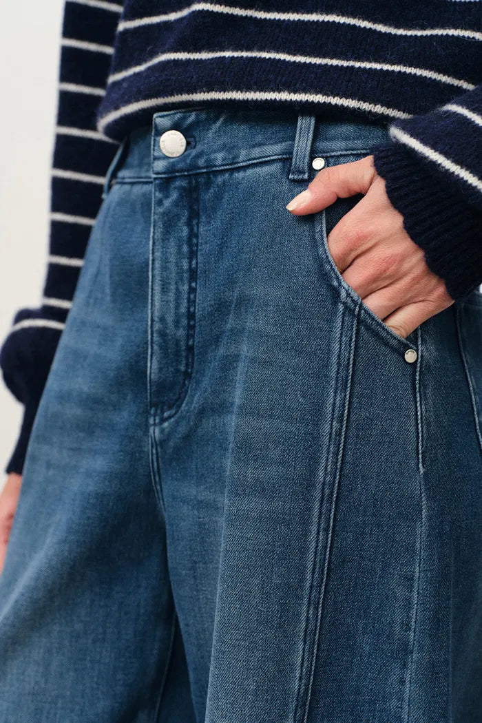 Kira Washed Barrel Leg Jeans in Cotton Denim