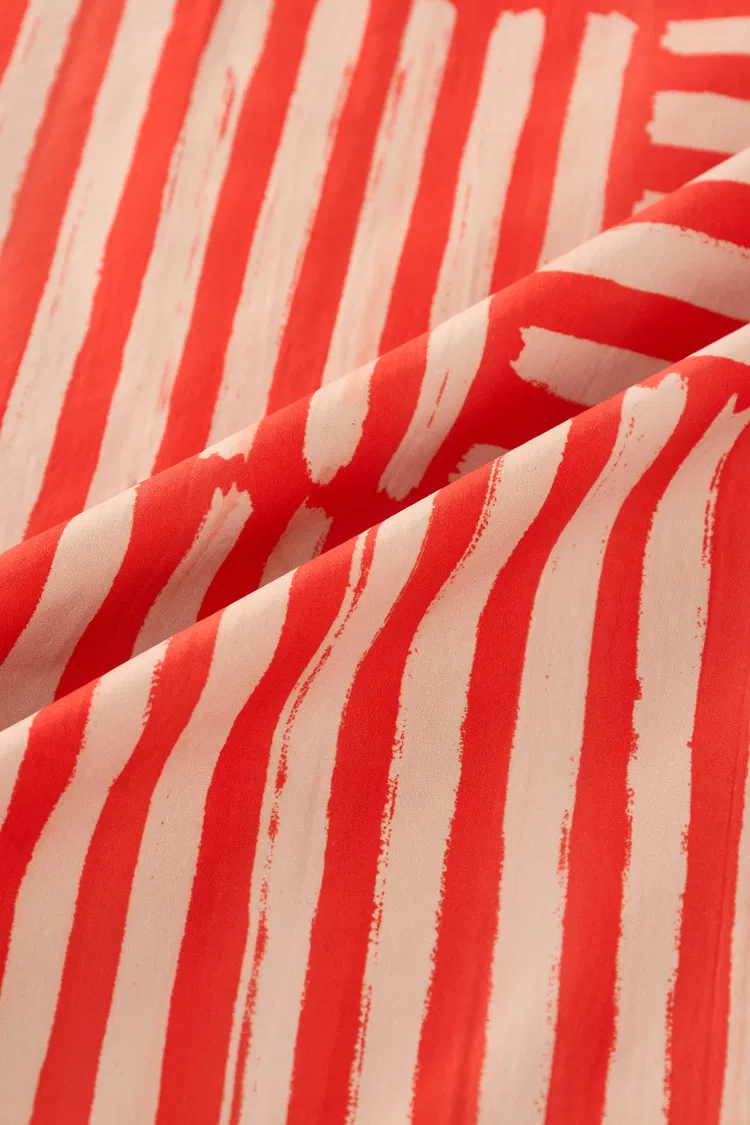 Lightweight fabric with custom prints enhanced by permanent pleating. Natural stretch that follows your body without restriction. Cool to the touch with a cotton-like feel. Exceptionally breathable even in intense summer heat. Moisture-wicking for all-day comfort. Cooling, textural, breathable.