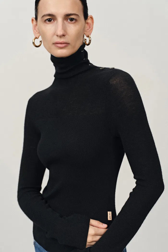 Lumina Semi Sheer Shoulder Turtleneck Undershirt in Merino Wool Rib Knit