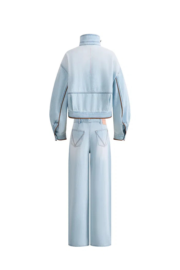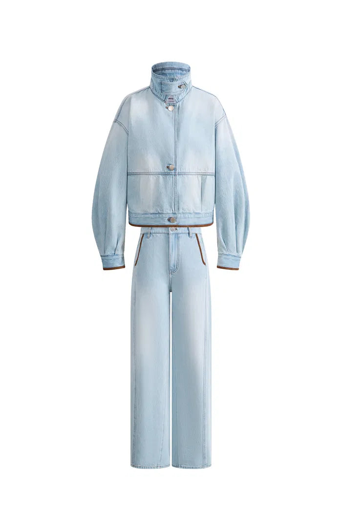 Luna Lantern Sleeve Jacket and Jeans Matching Set in Cotton Denim