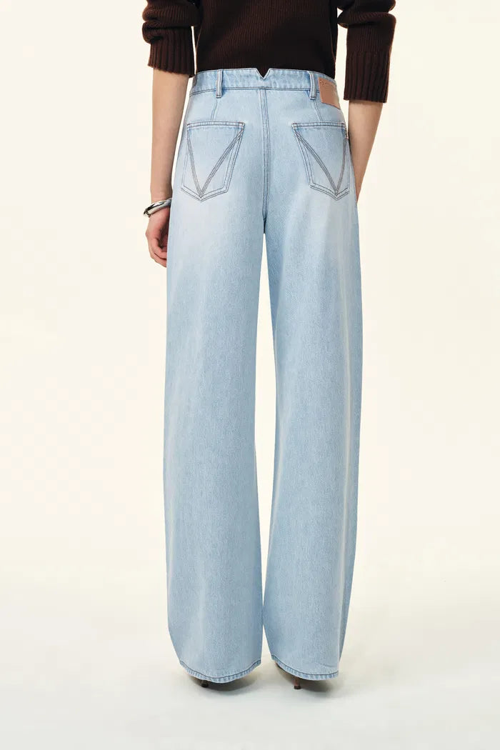 This deconstructed jacket balances a sharp edge with a wearable cropped cut. Featuring subtle suede piping and a versatile stand collar, it’s an intelligent design that adds a refined, vintage inspired touch. These horseshoe jeans balance sharp tailoring with a relaxed, loose fit. Featuring eco-friendly panels and subtle suede trims, they offer a modern, architectural shape that makes everyday dressing feel intentional.
