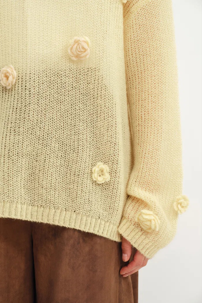 Sally Hand Crochet 3D Floral Camellia Sweater in Mohair Blend