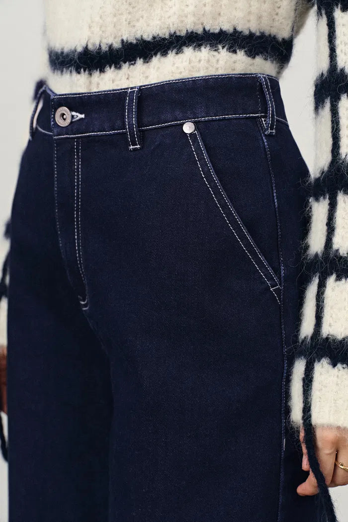 Wool-denim blend feels substantial yet soft with fleece lining that warms from the inside out. Wide legs look crisp and modern. Layer thermals underneath and you're set for the coldest days.