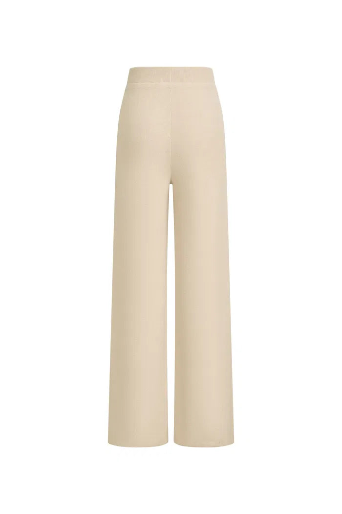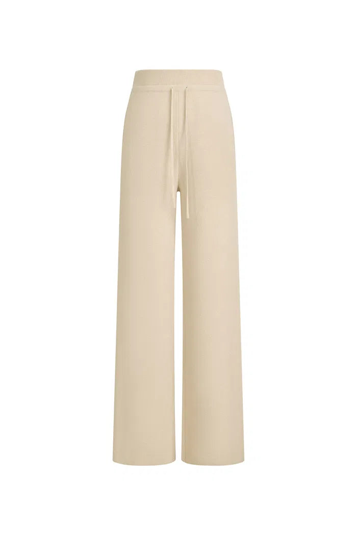 Knit trousers that bring a laid-back mood into a cleaner silhouette. A drawstring waist and wide leg keep it comfortable, while the cream tone pairs easily with darker layers across seasons.