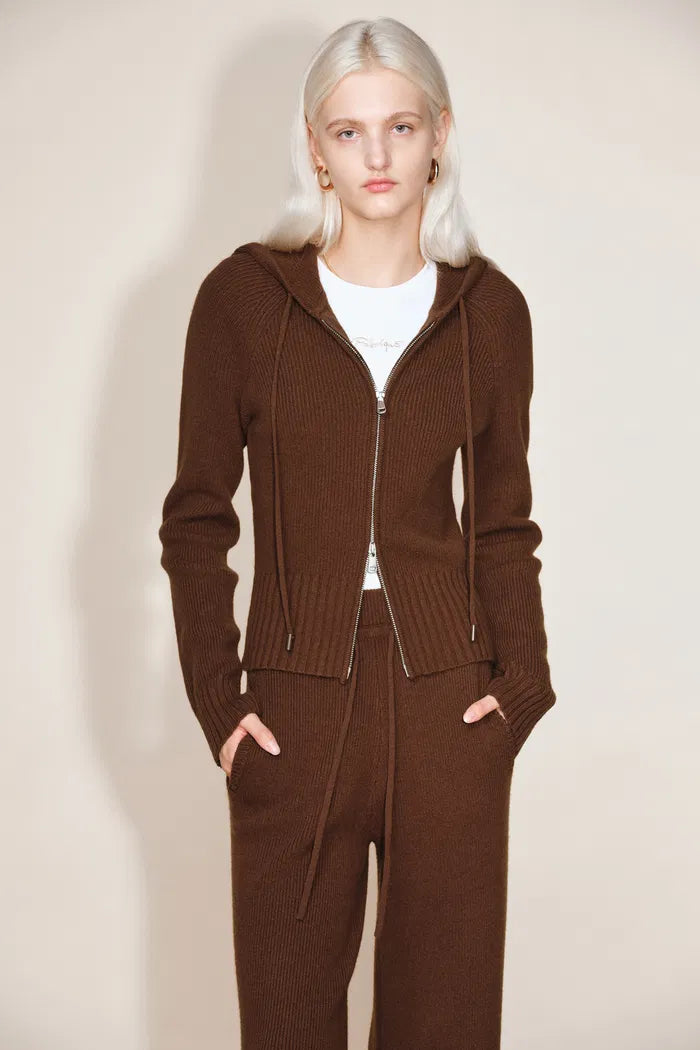 Vivi Hooded Fitted Cardigan and Pants Matching Sets in Merino Wool Knit