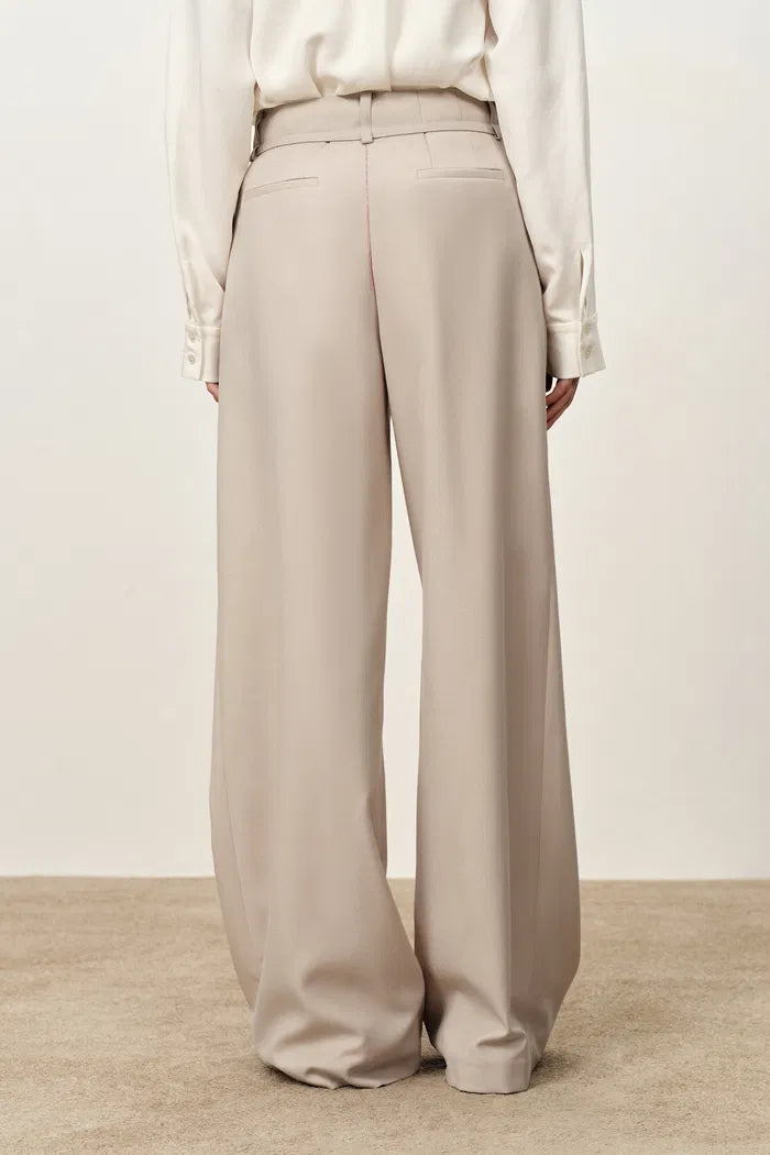 Pantalones de traje Halley de pierna ancha con cinturón atado en tela de traje resistente a arrugas