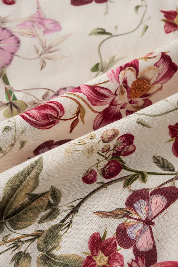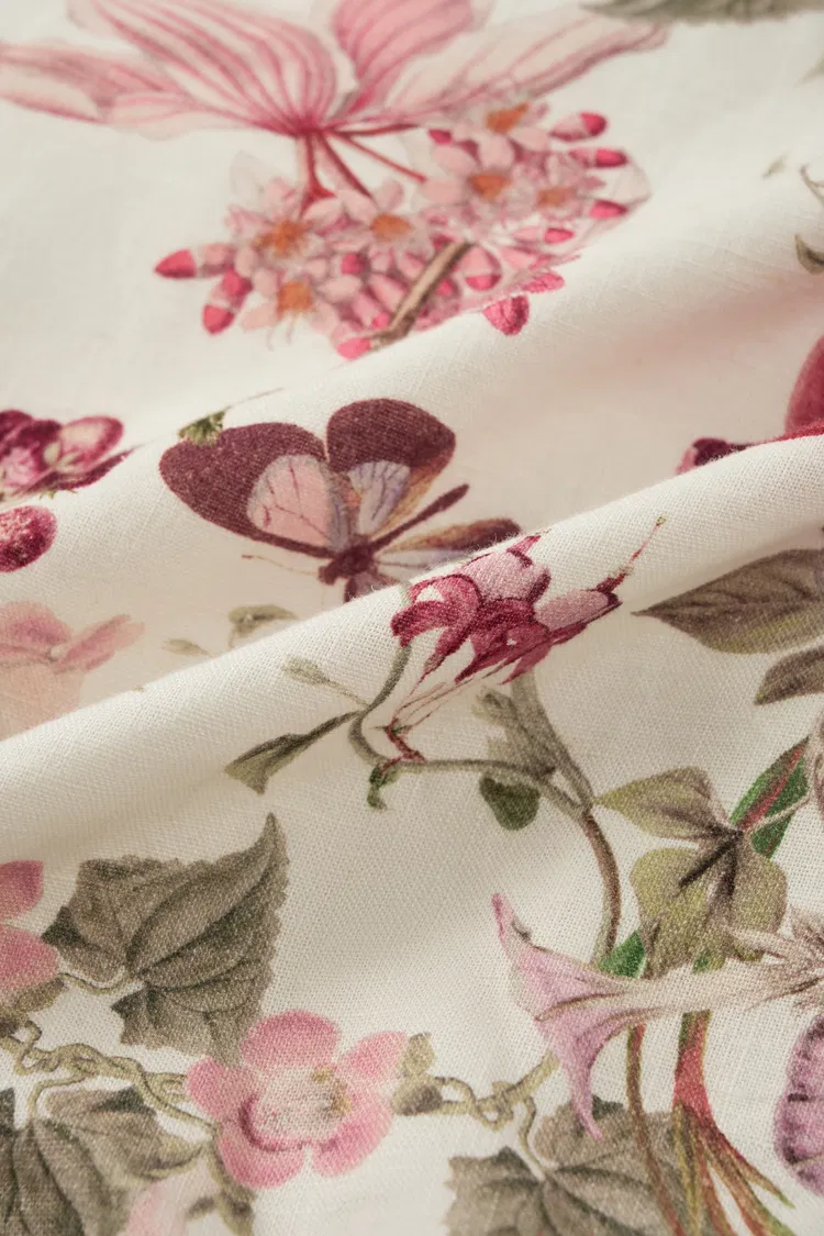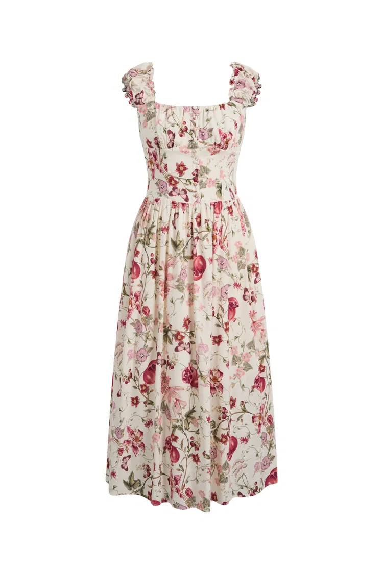 Vestido con tirantes y estampado de granada Rosalina fruncido en mezcla de lino