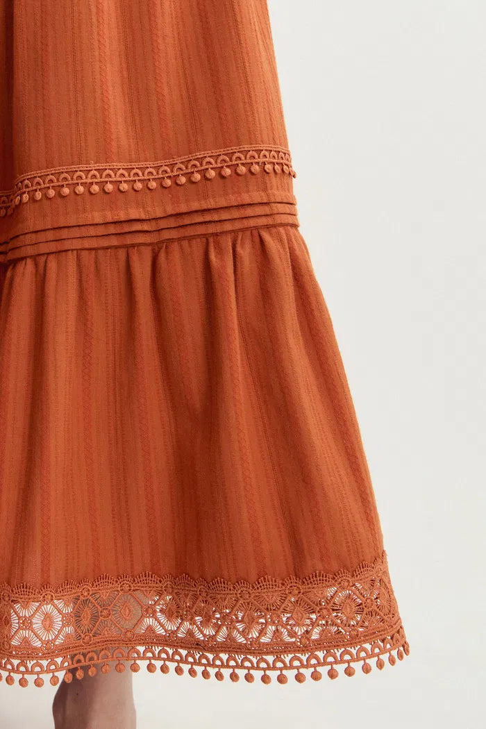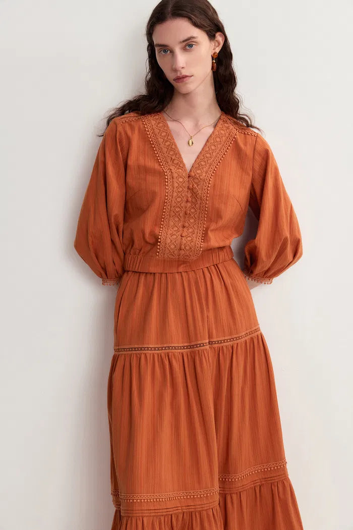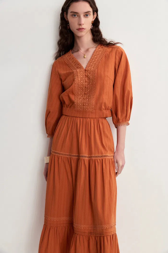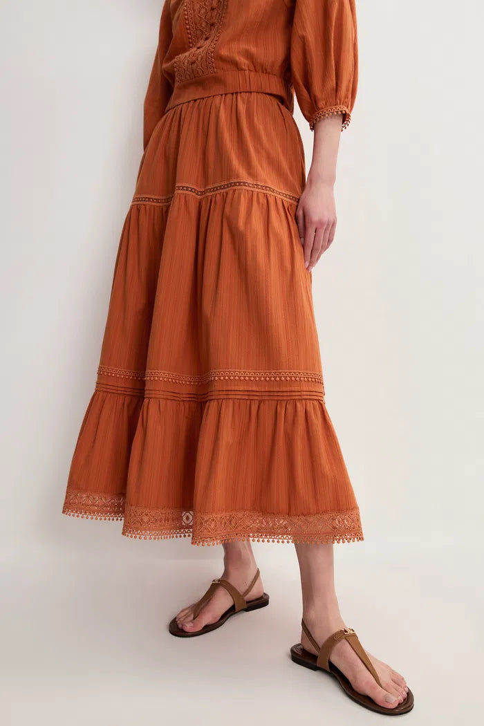 Falda Maxi Sybilla con Volantes y Calados en Algodón