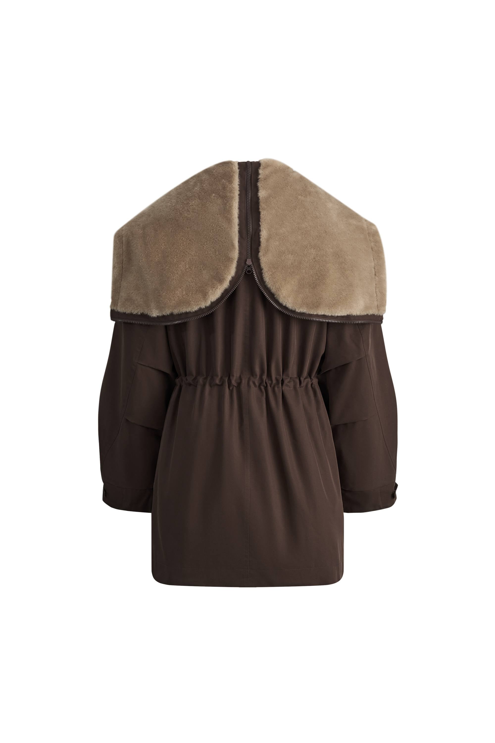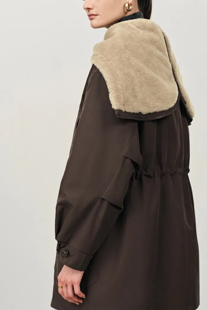 Parka Doris con Forro Acolchado y Cuello de Piel Desmontables en Sarga de Mezcla de Algodón