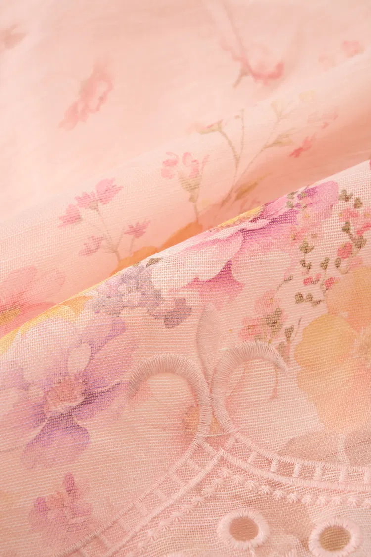 Inspirados en el estilo vintage de resort, estos shorts de organza de seda y lino presentan un estampado floral suavemente sombreado y un detalle de cintura redondeada. El bordado con calados a lo largo de los bordes añade textura, convirtiéndolos en una pieza fuerte para escapadas en climas cálidos.