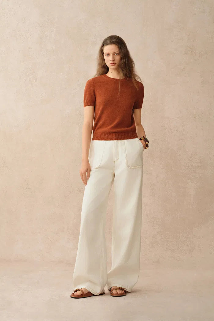 Top de manga corta con cuello redondo Miya en punto de lana merino
