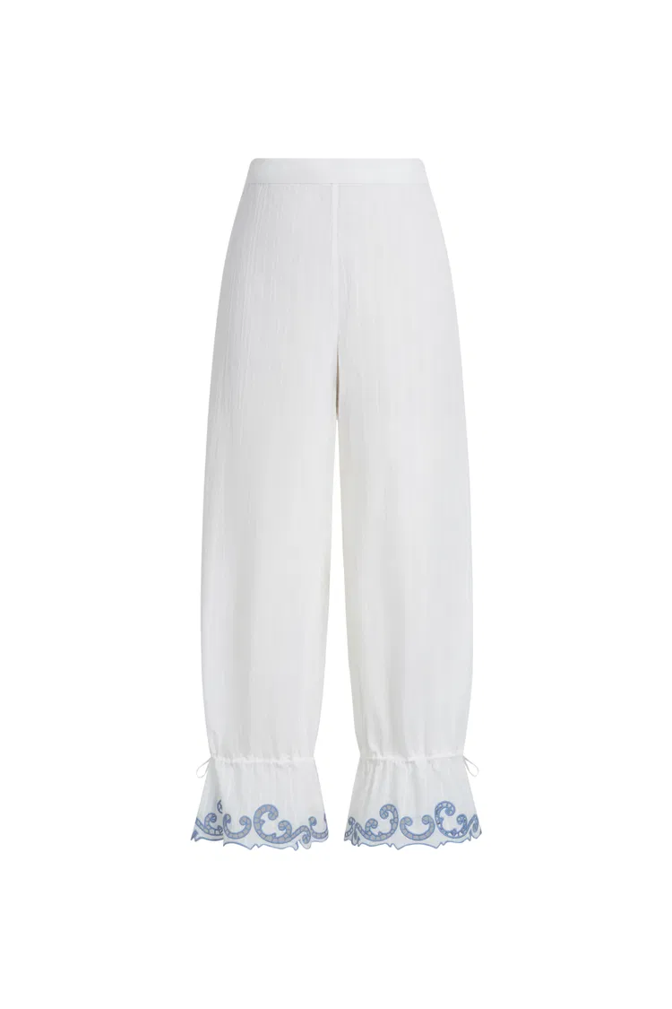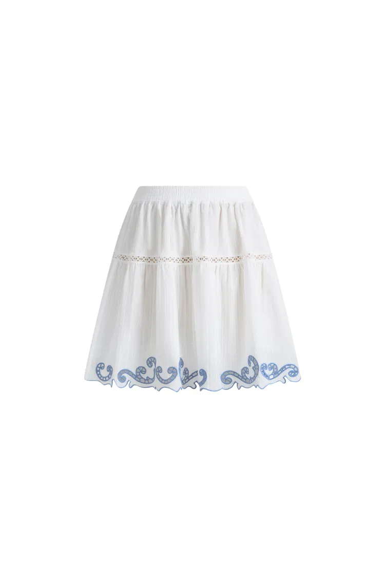 Esta camisa bordada se siente relajada pero cuidada, con un corte holgado, textura sutil y un lazo ajustable en el frente. Tiene un ambiente fácil de vacaciones, pero también funciona bien con camisetas simples, faldas o denim en casa.