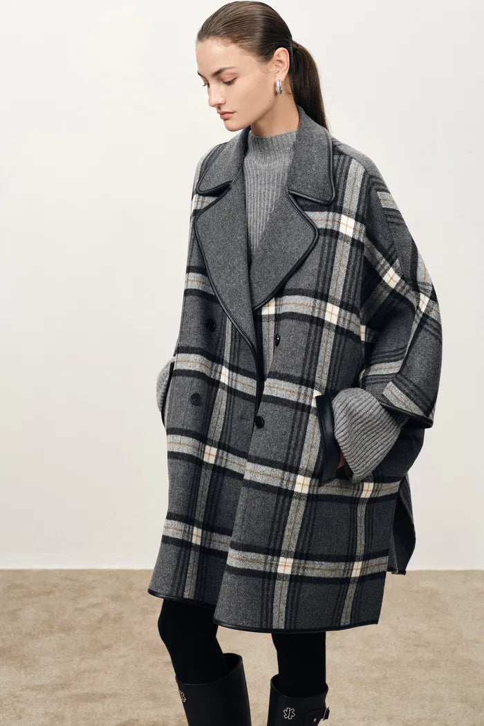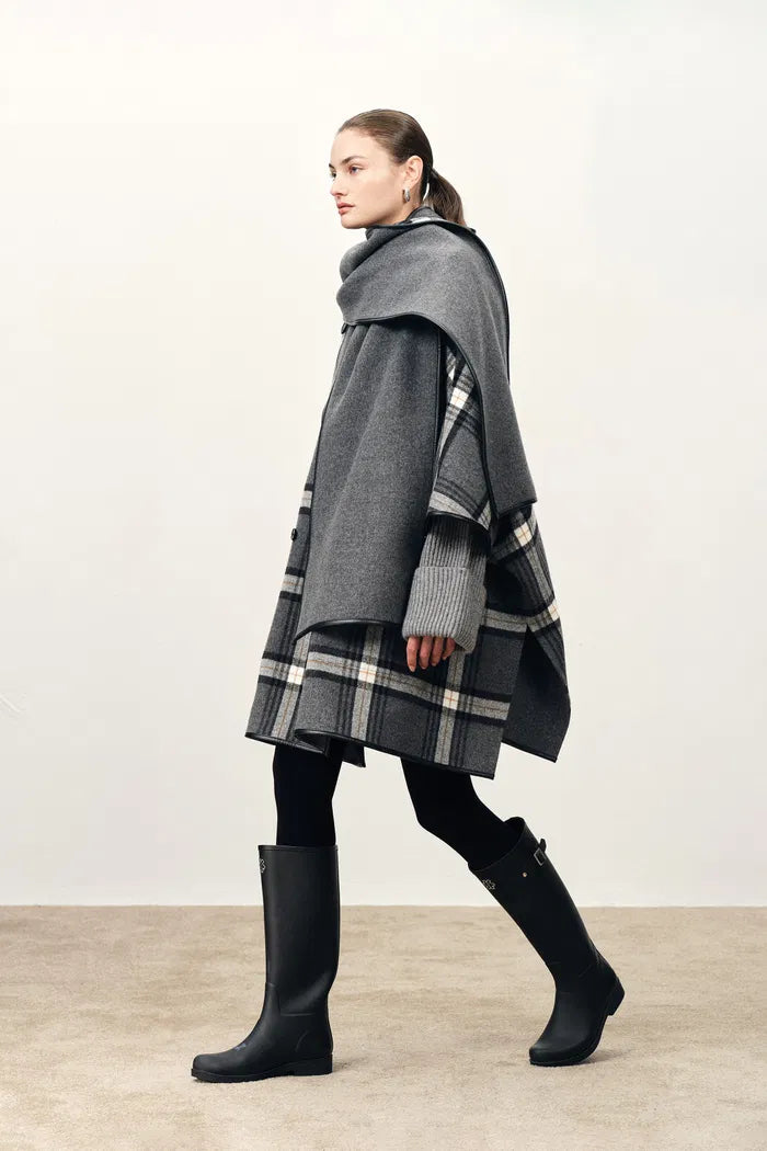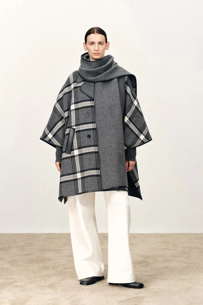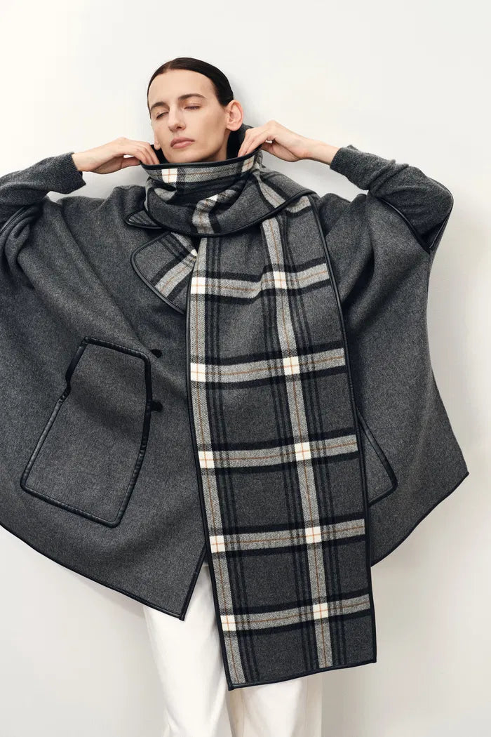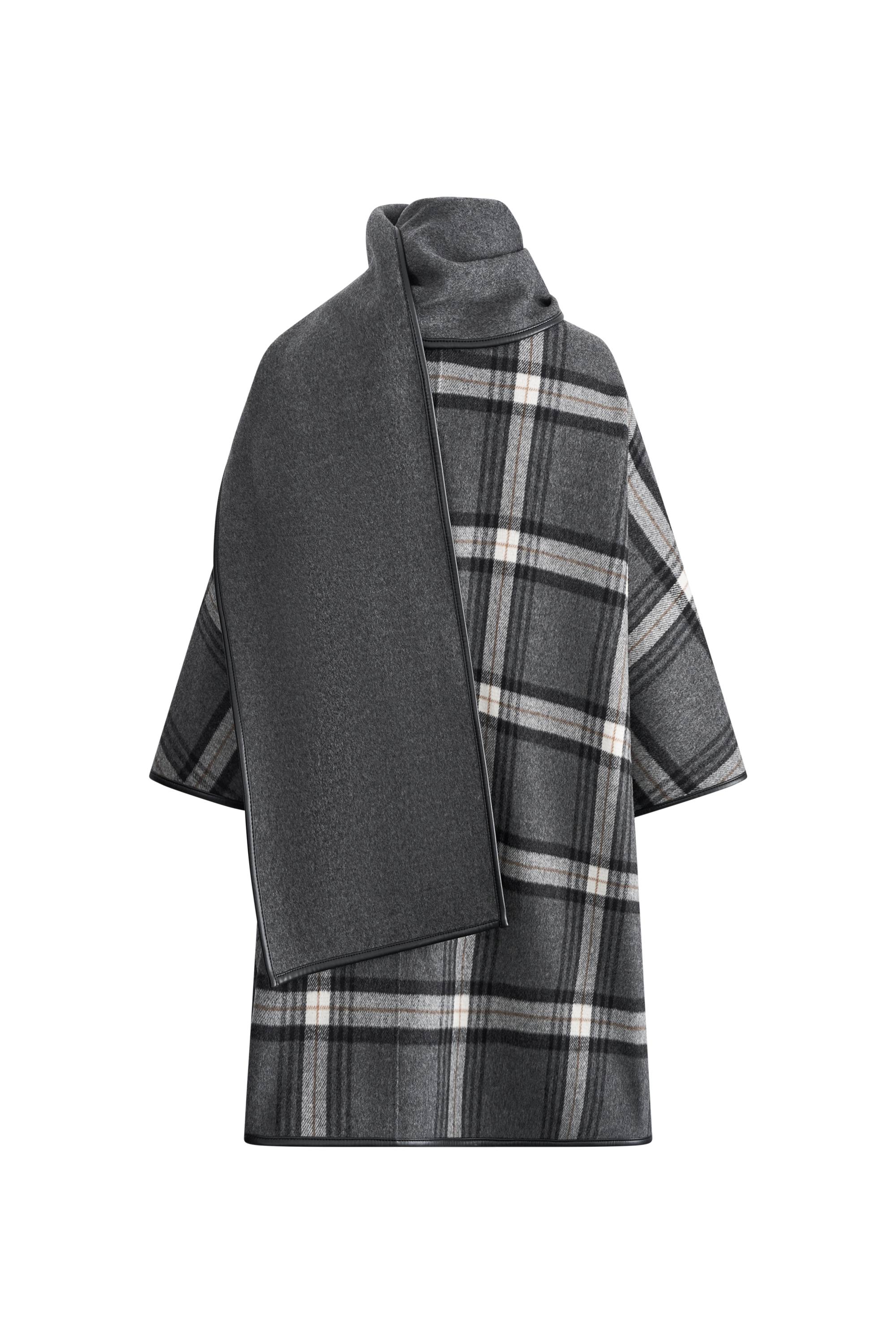 Mezcla de lana doble faz - un lado sólido clásico, el otro con cuadro vintage y textura suave de pelo y brillo gracias al refinamiento del Merino australiano. Muy ligero y suave para siluetas fluidas con calidez sin esfuerzo. Clásico, fluido, sin esfuerzo.
