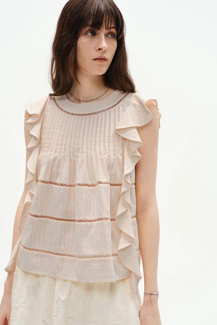 Top sin mangas con volantes artesanal Agnes en algodón