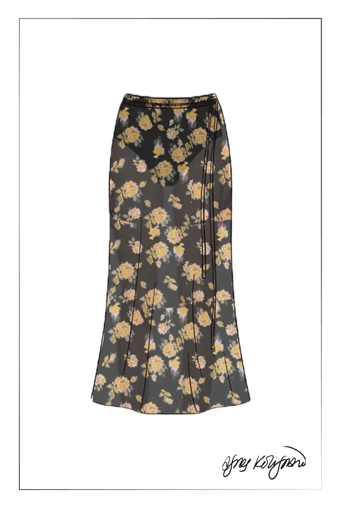 Falda Athena con Estampado de Rosas en Seda Morera 22MM