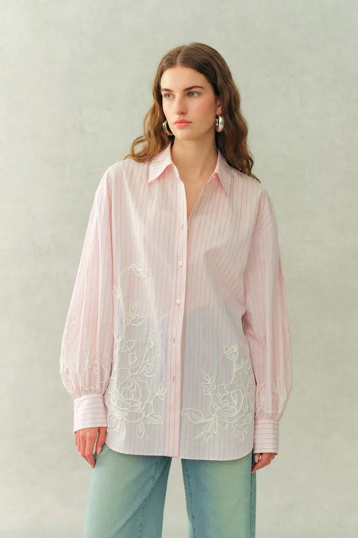 Camisa oversize de rayas con mangas abullonadas Brooke en popelina de algodón