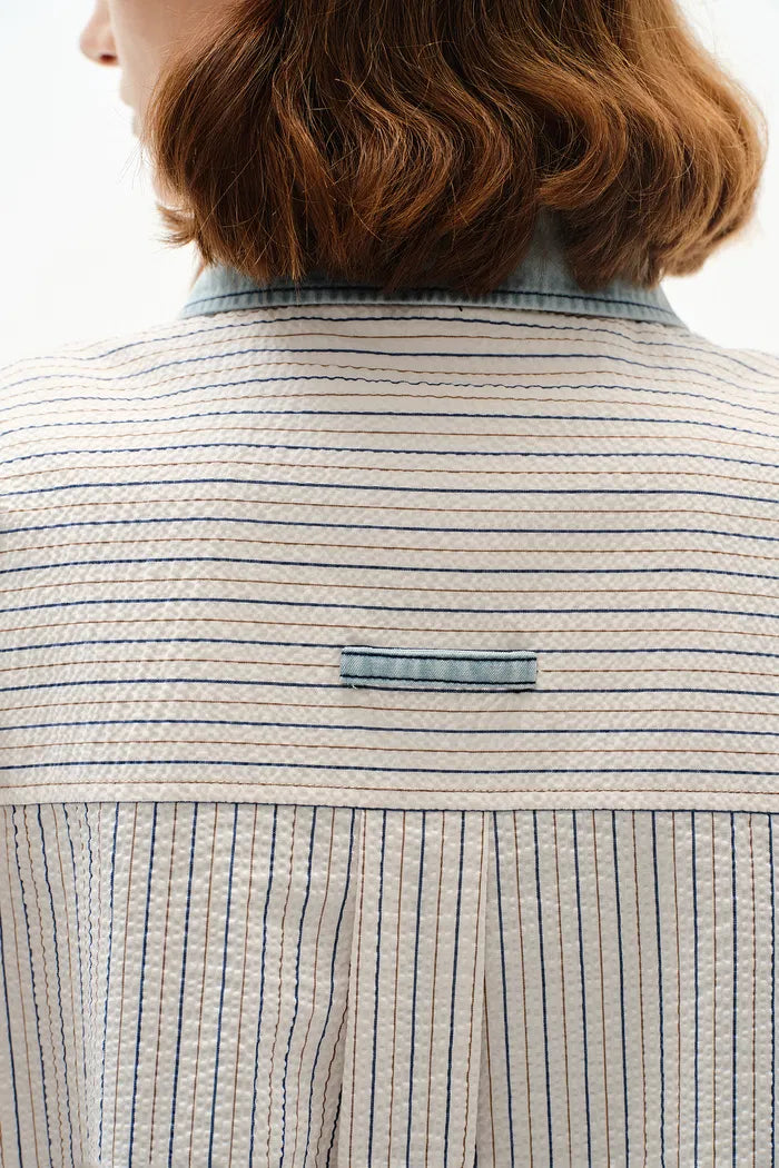 Camisa Daisy a rayas con cuello de denim en seersucker de algodón