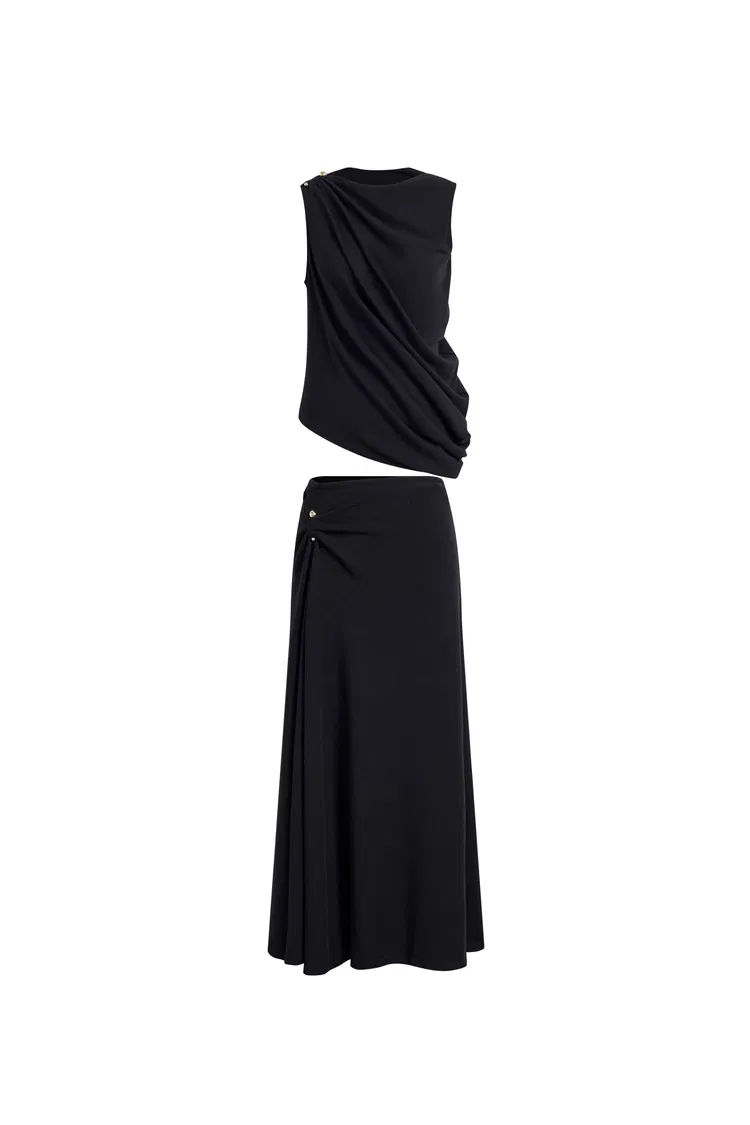 Conjunto de top sin mangas asimétrico drapeado y falda Florence en mezcla de algodón y modal tejido