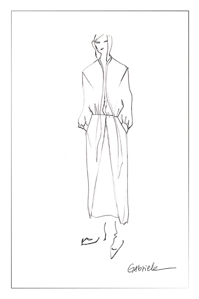Gabriele brings early 90s style memories to life, weaving minimalist aesthetics through various silhouettes and textures. Shoulders take on rounded slopes, legs come in diverse forms, while menswear tailoring details enhance the overall shape. The collection offers city dwellers multiple color choices, creating timeless layering possibilities.