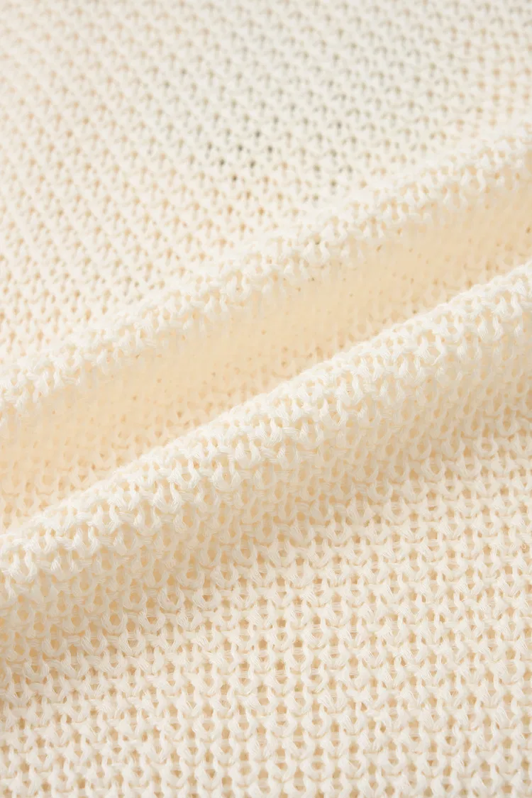 Hilo de mezcla de lino fino con suavidad y resistencia. Ligero y transpirable, con una construcción de punto abierto que añade textura sin perder la forma.