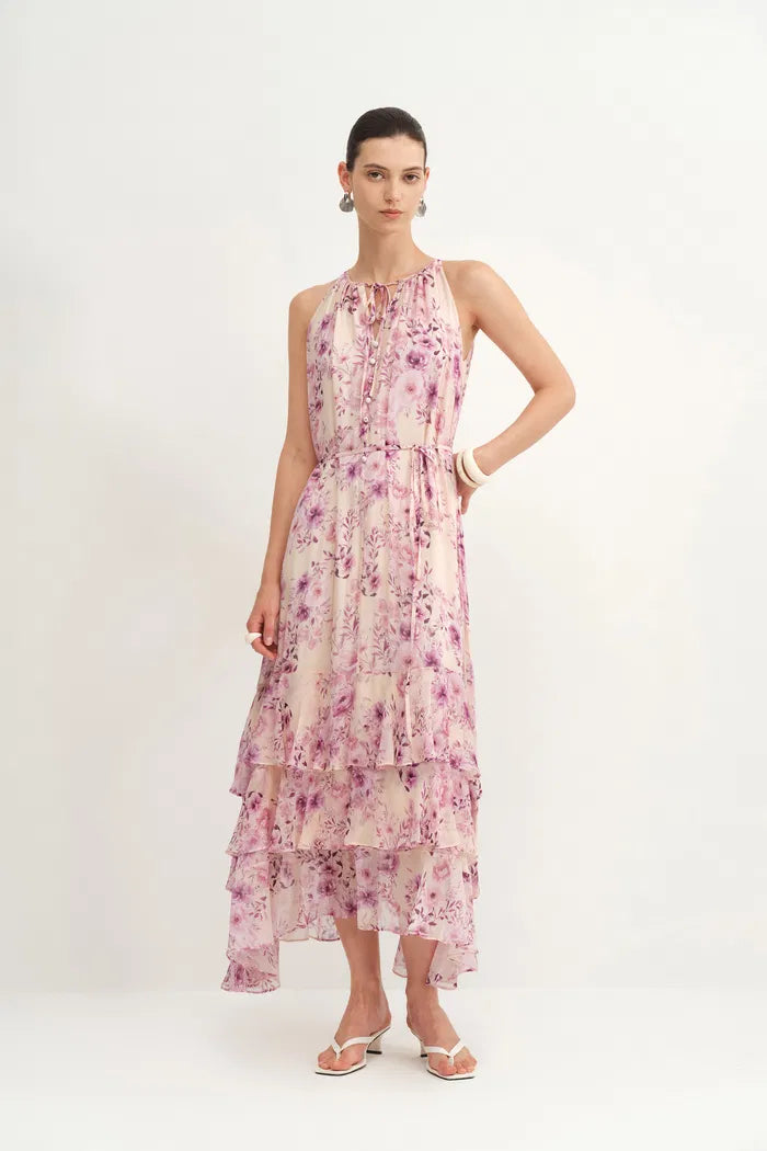 Torunn brings a fresh romantic lens to spring garden palettes, blending modern minimalism with classical elegance. Her painterly florals flow seamlessly into fluid dress silhouettes, creating pieces that transition effortlessly from weekend getaways to casual dates. The collection balances contemporary clean lines with timeless sensibility, making these versatile pieces perfect for multiple occasions.