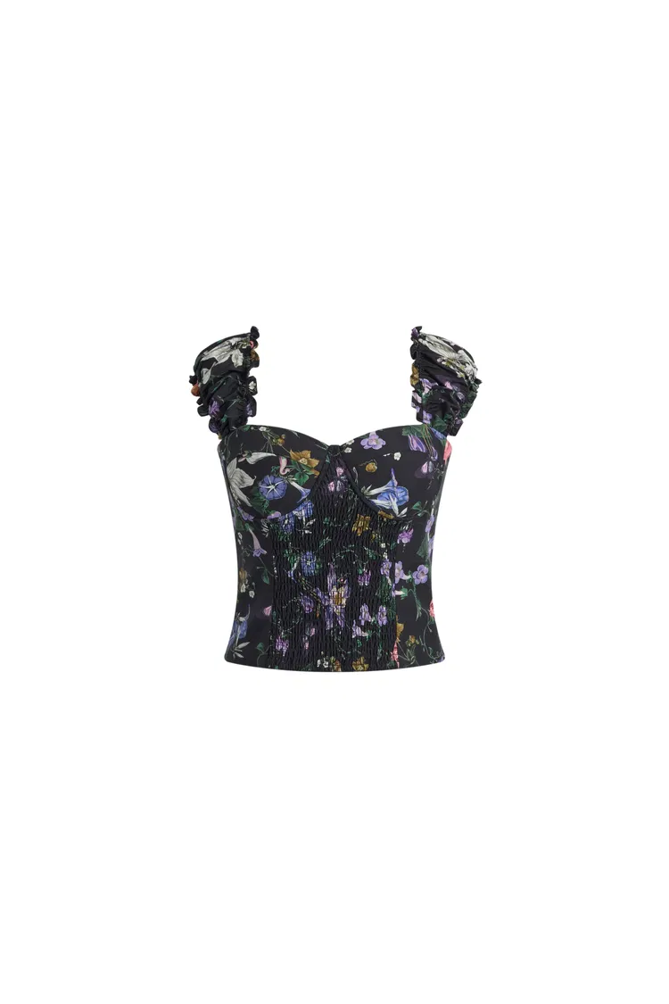 Top tipo camisolín con estampado de granada Sirena, fruncido, con copas incorporadas en mezcla de seda y algodón
