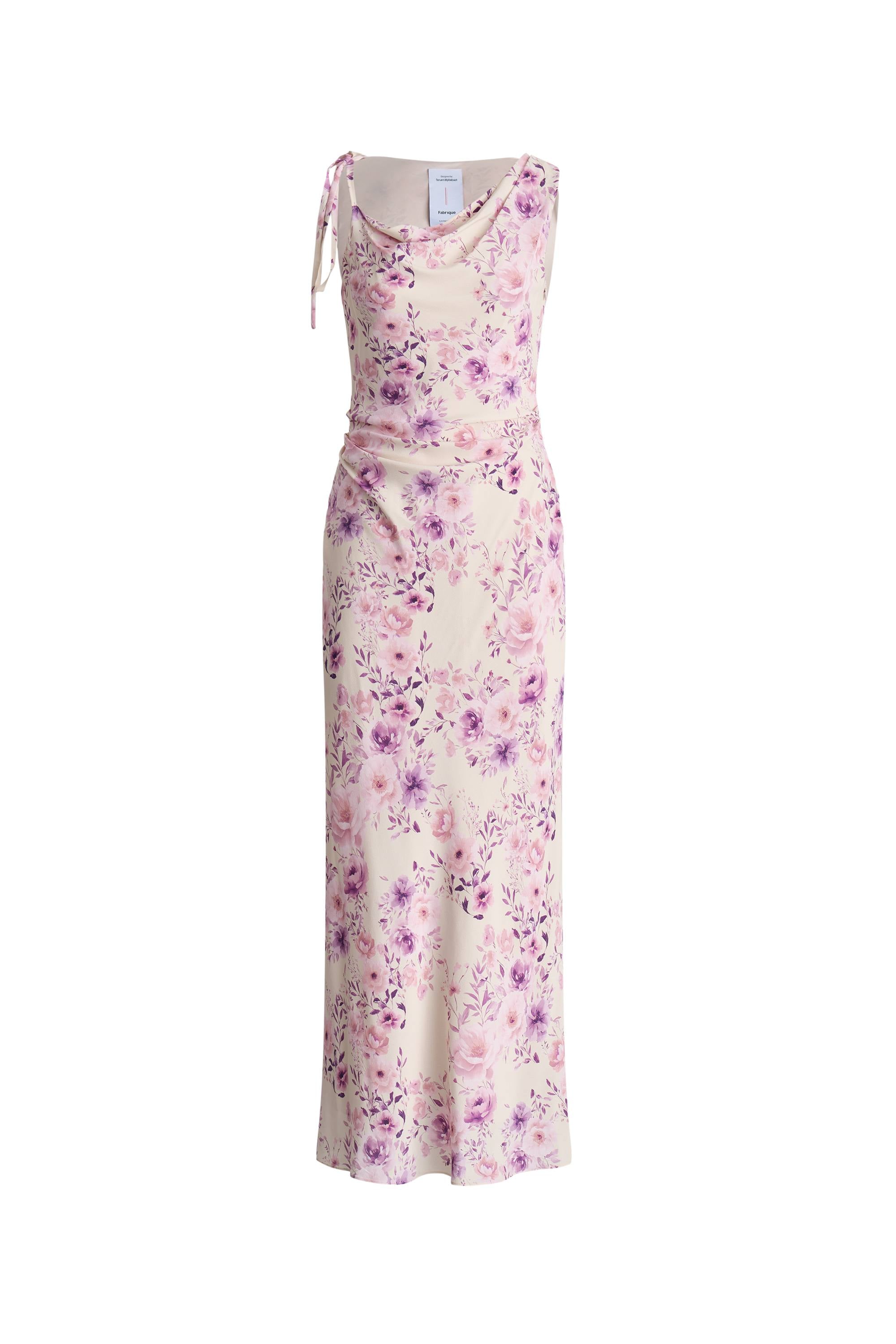 Vestido Flora con cuello drapeado asimétrico Alice en crepé de seda de morera