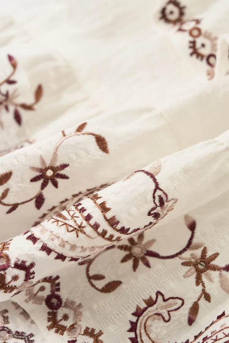 Falda Brioche con Bordado Paisley en Algodón Arrugado