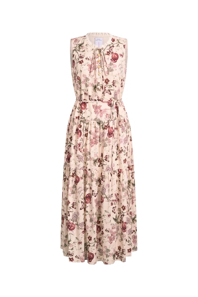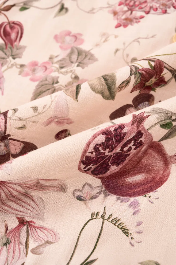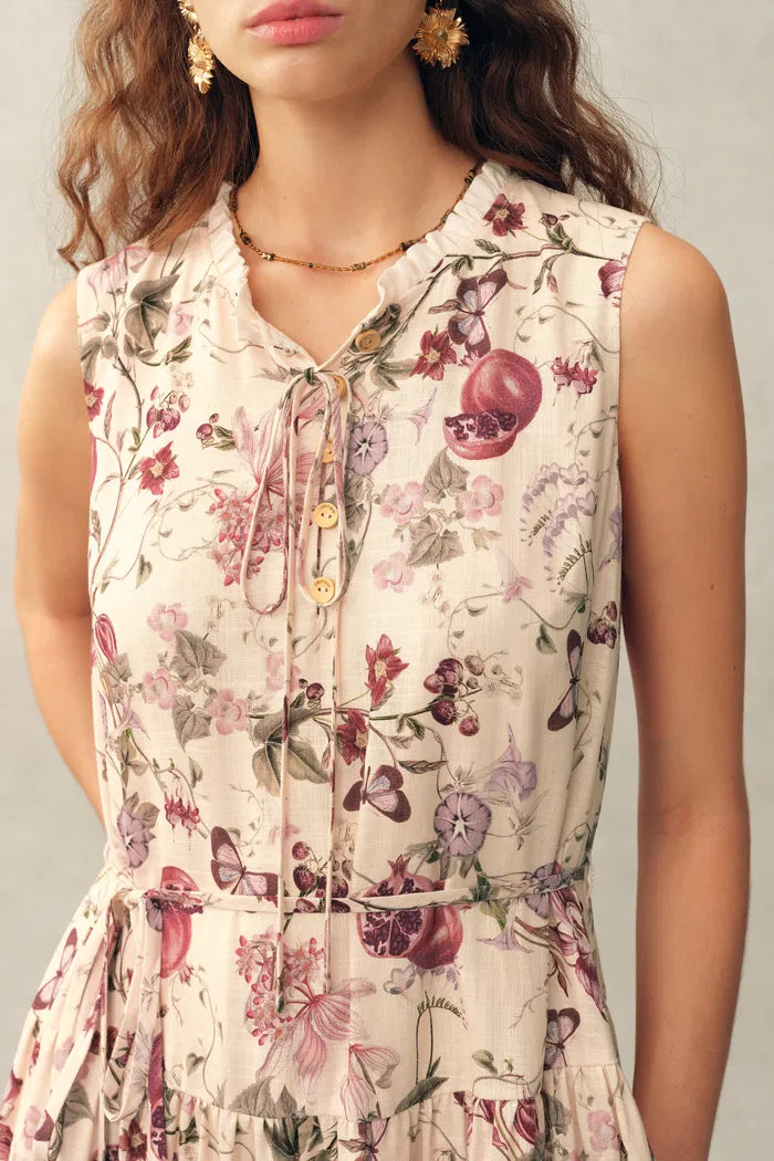 Vestido escalonado floral con estampado de granada Liana en mezcla de lino