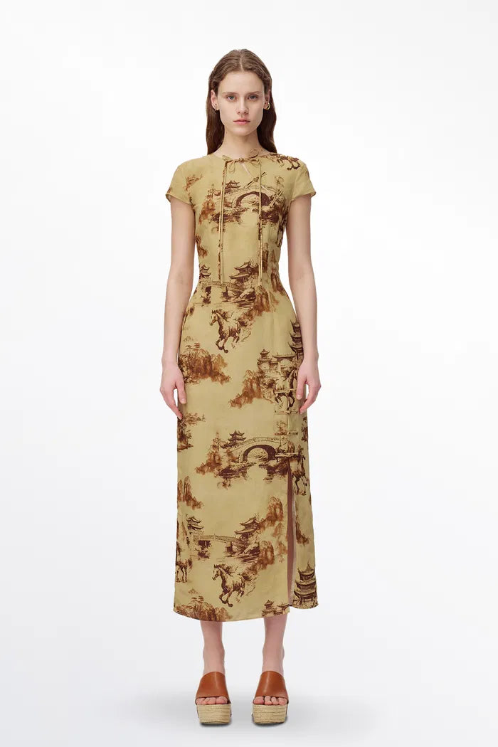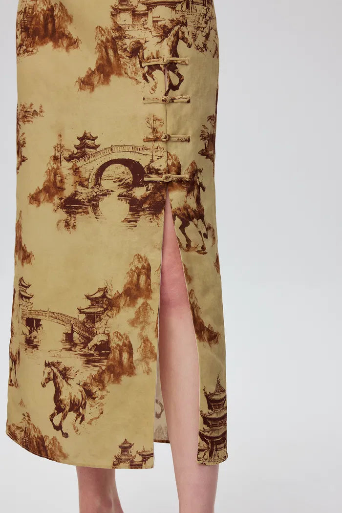 Vestido qipao estampado oriental Tansya en mezcla de viscosa