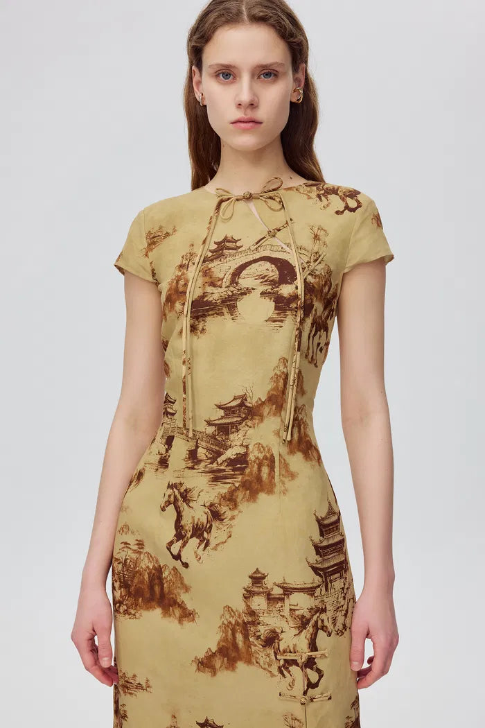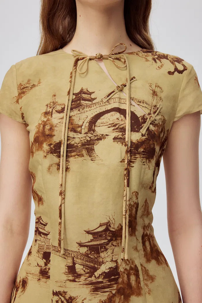 El Tansya Oriental Print Qipao combina una silueta clásica con un toque de estilo moderno, presentando un top ajustado con una falda en línea A sutilmente acampanada. Es una elección perfecta para añadir un toque de elegancia vintage oriental a tu estilo.