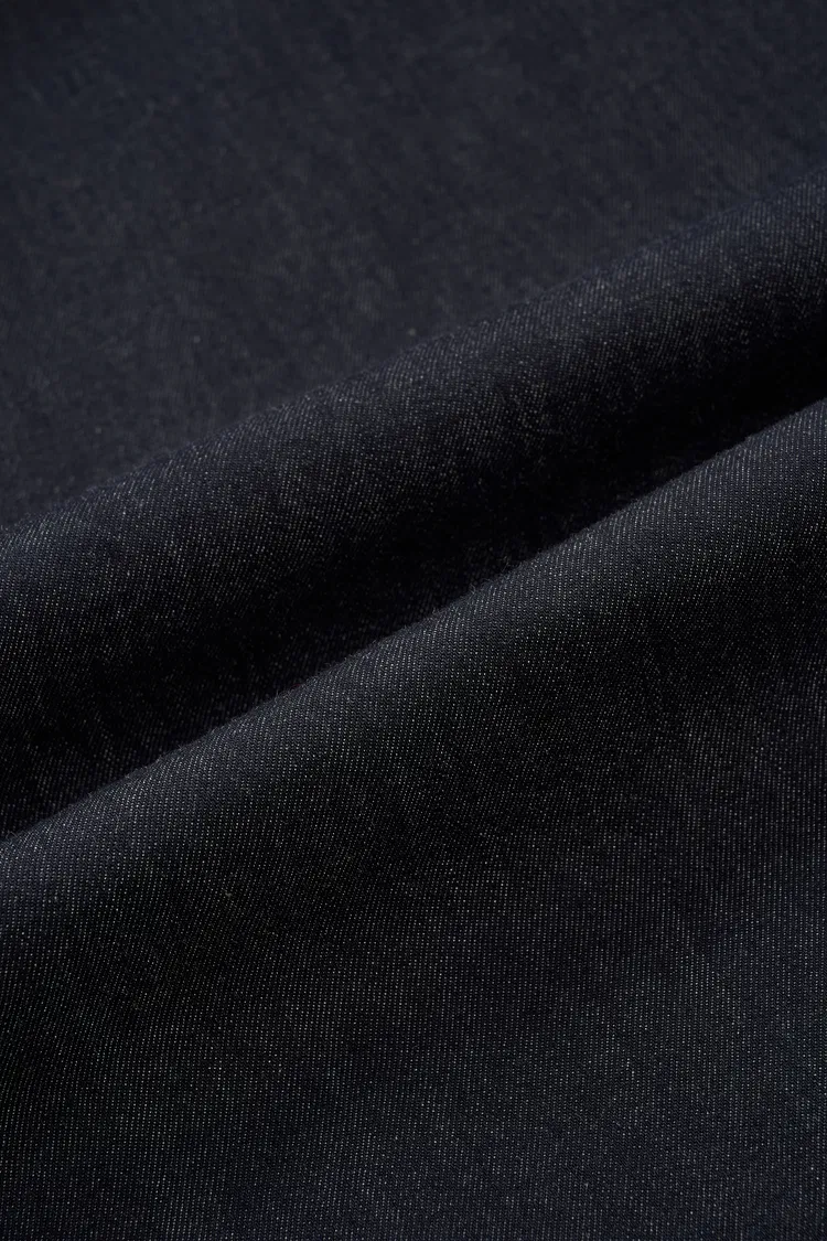 Denim en coton lavé avec une main plus douce et un look propre et structuré. Assez léger pour les journées chaudes, il garde la forme nette tout en restant facile et confortable à porter.