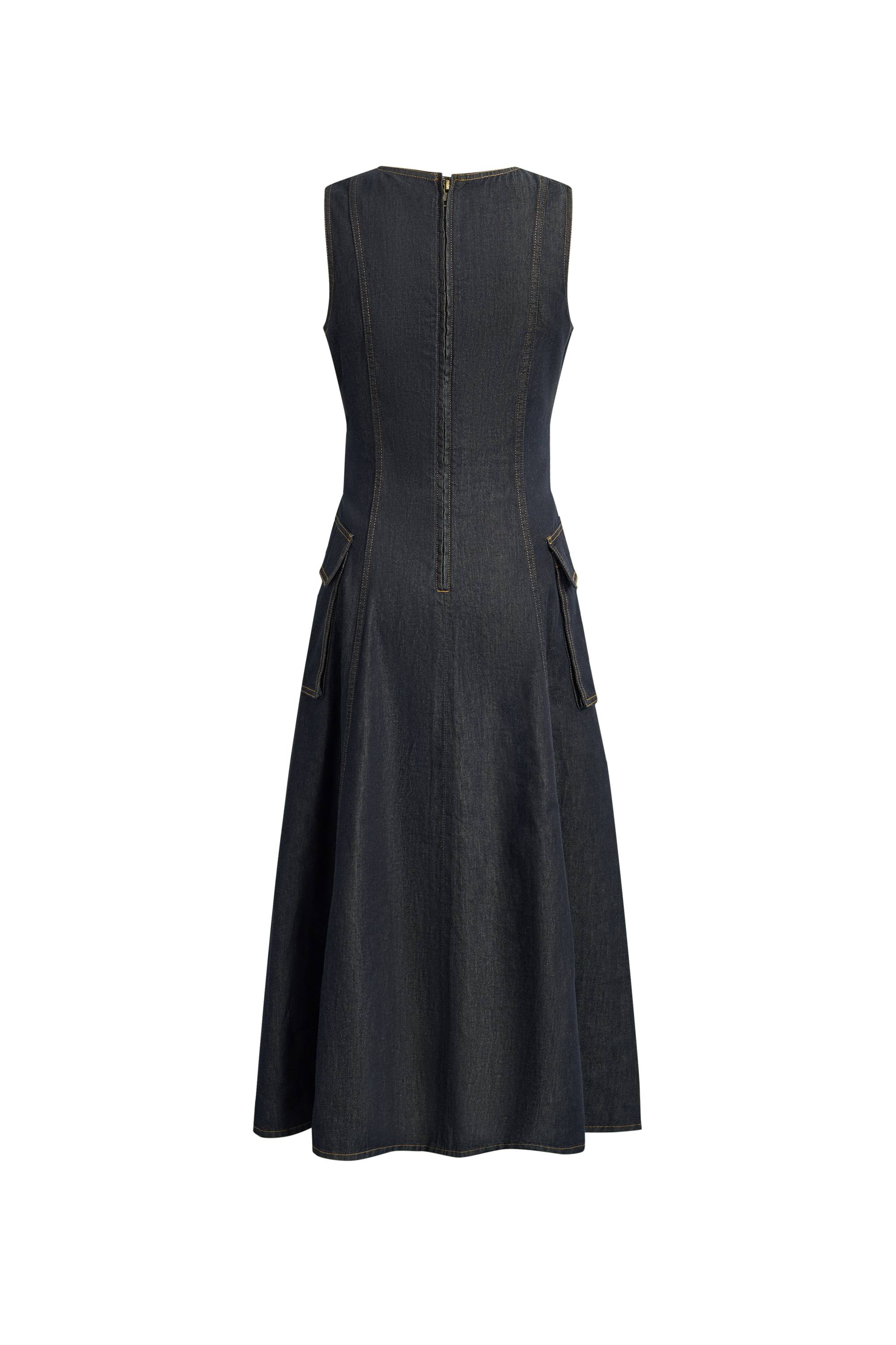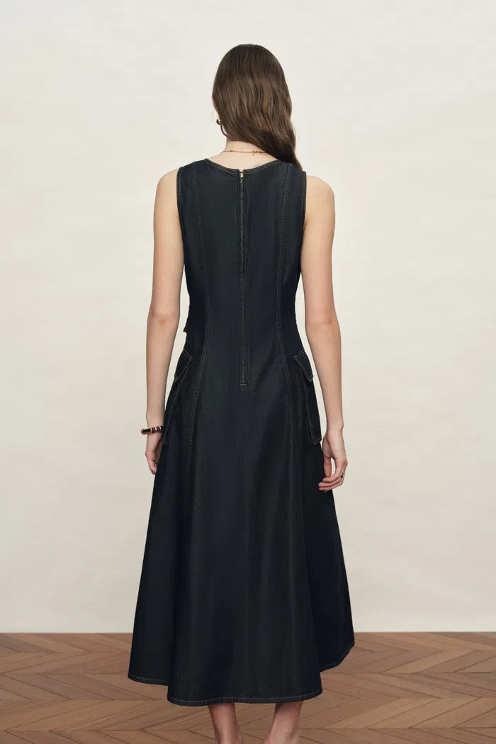 Robe sans manches légère lavée en denim de coton Sadie, coupe trapèze