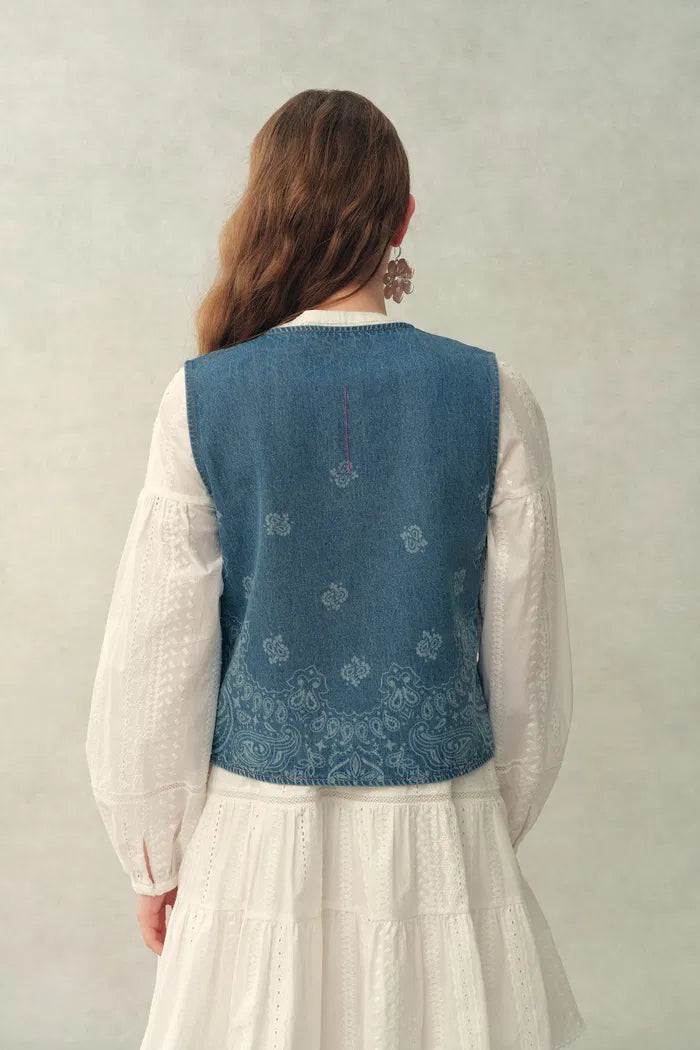 Top sans manches Wren Paisley en denim de coton