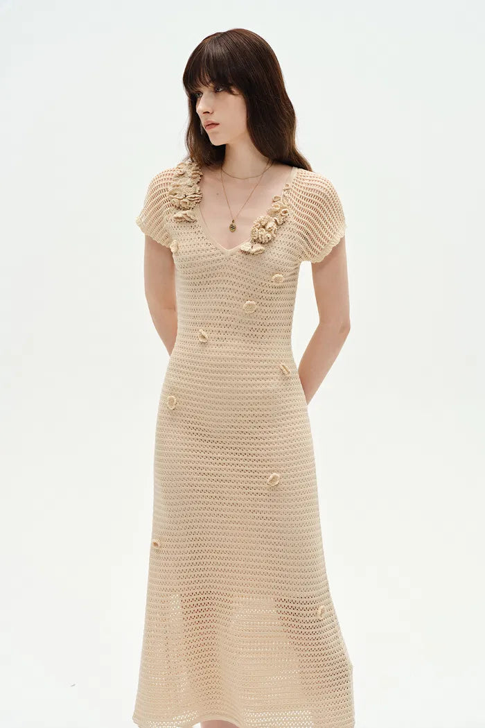 Robe Arali à appliqué floral crocheté main en lyocell cachemire