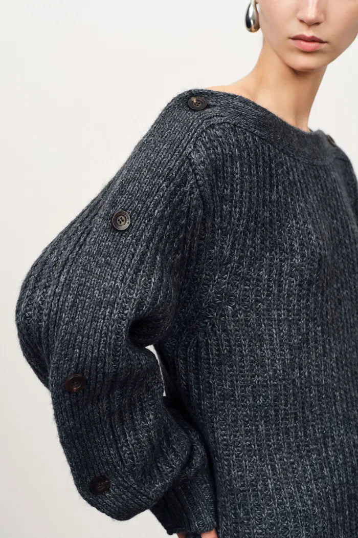 Une robe en maille qui joue avec les proportions. L'encolure ajustable passe de l'épaule dénudée au col bateau, tandis que la maille côtelée épaisse garde sa forme au fil du temps. Sans effort, féminine, et conçue pour mettre en valeur du jour à la nuit.