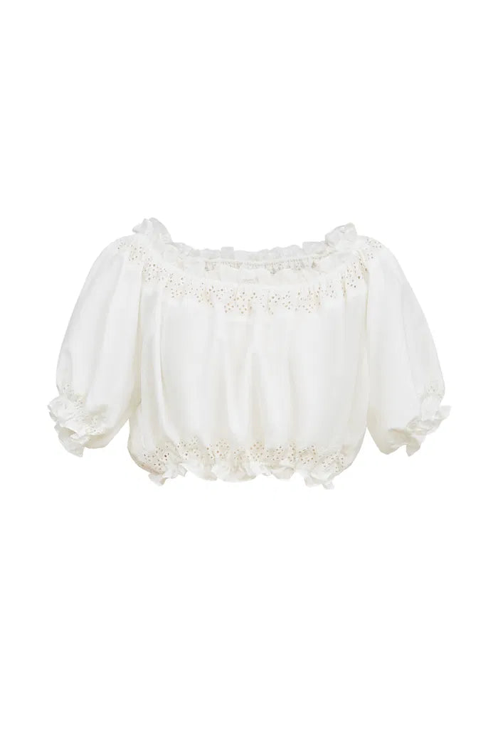 Haut épaules dénudées à manches bouffantes Luise en coton soie