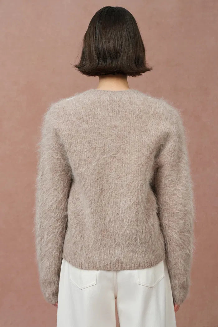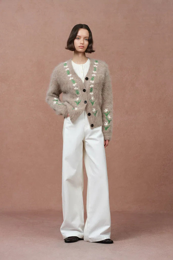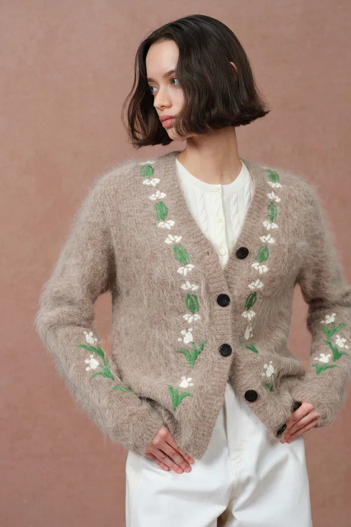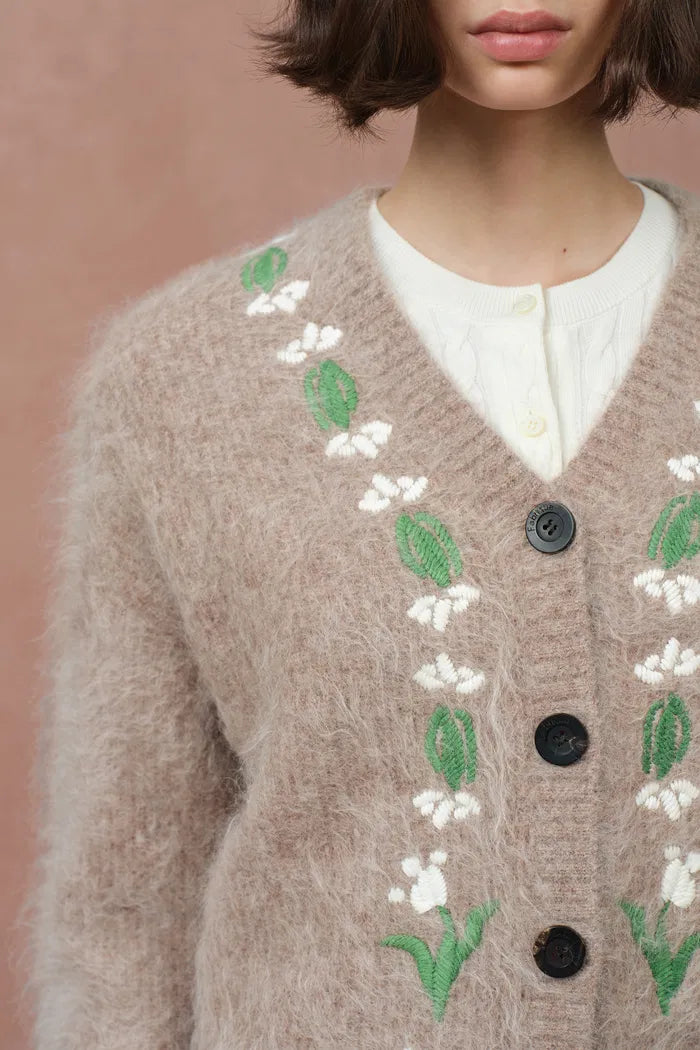 Cardigan Piper aux lys travaillés à la main en mélange alpaga tricoté