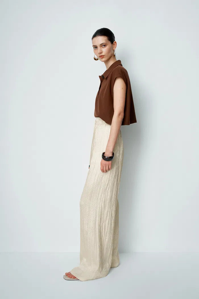 Pantalon texturé Aurora en satin plissé