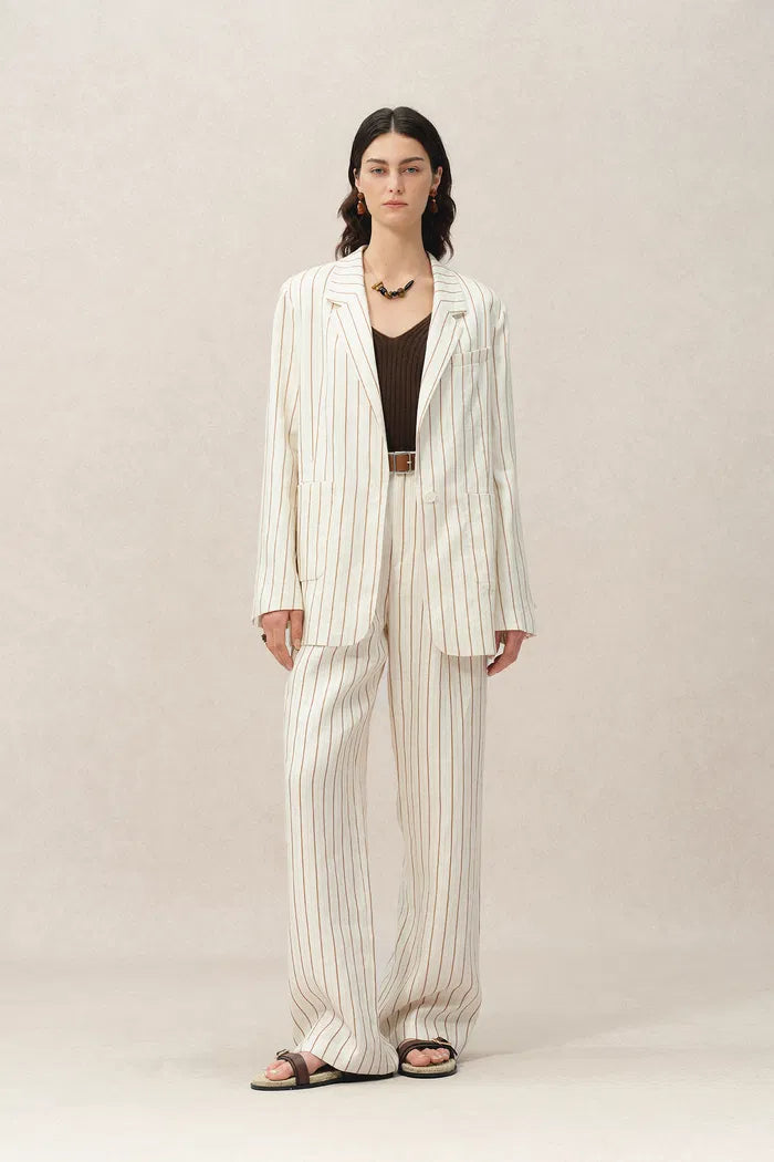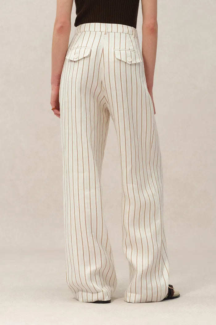 Pantalon de costume rayé Eden en lin