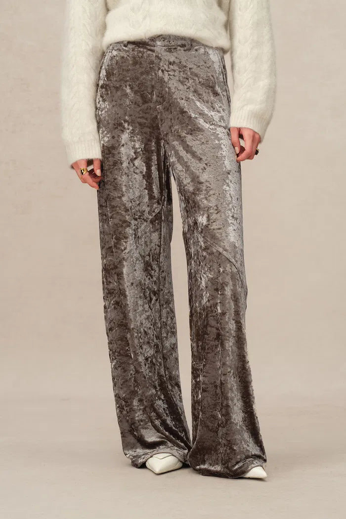 Pantalon droit en velours brillant Shining en velours glacé
