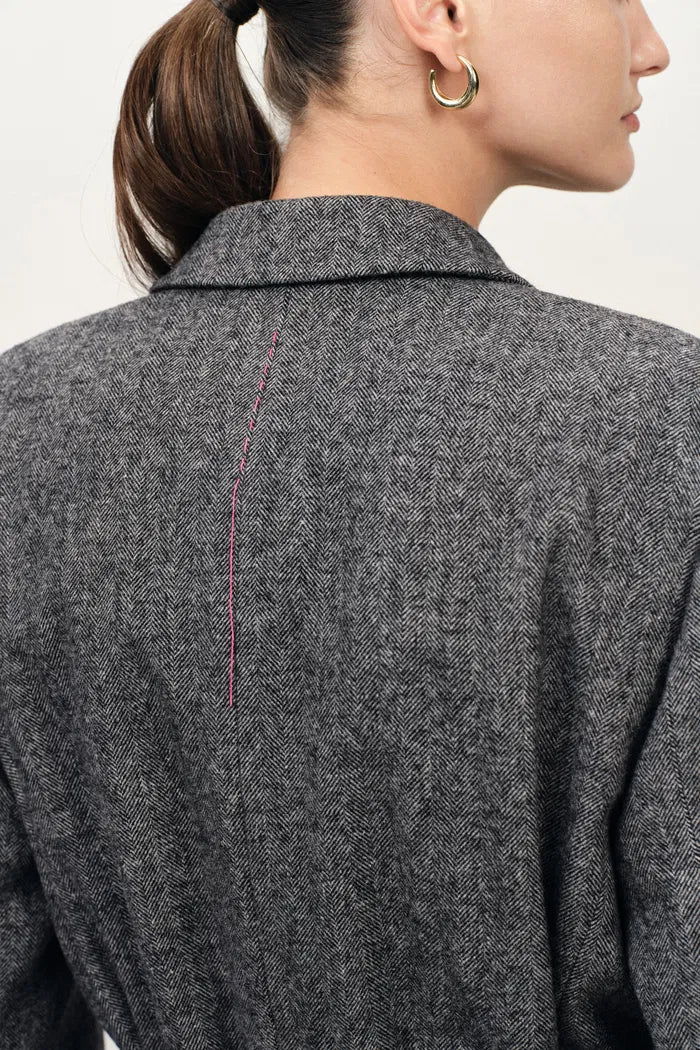 Blazer déstructuré asymétrique à double ceinture Charlie en laine mérinos