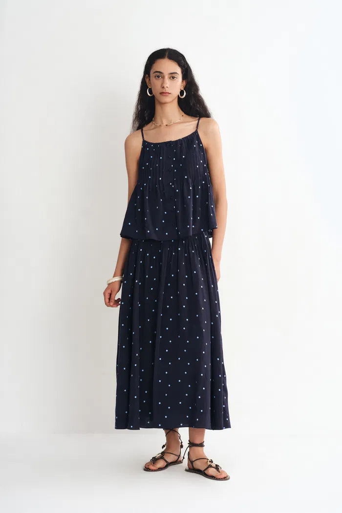 Ensemble top caraco et jupe à pois Ellie en mélange de lin