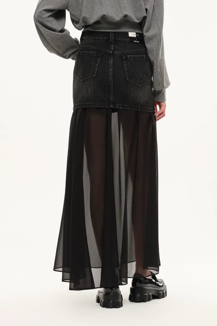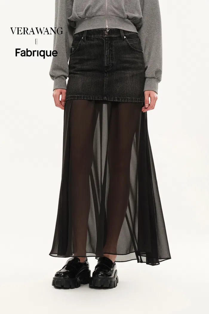 Ensemble jupe Riddle en denim et semi-transparent en denim fin