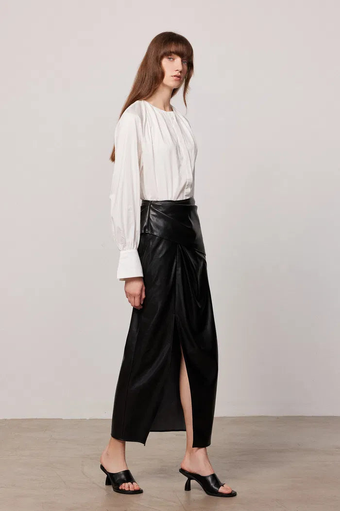 Jupe Plissée Fendue Leona en Cuir Végan