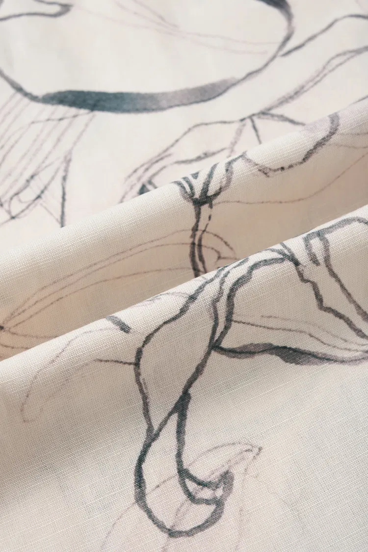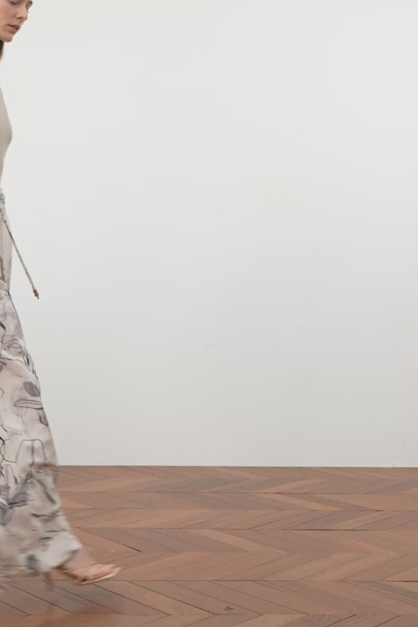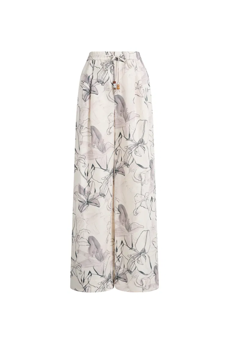 Questi pantaloni floreali rilassati sono leggeri ma comunque espressivi, con una stampa di gigli a inchiostro e una forma ampia che cade naturalmente dalla vita. Il misto lino li rende traspiranti, e la vita con coulisse mantiene la forma facile e naturalmente valorizzante.