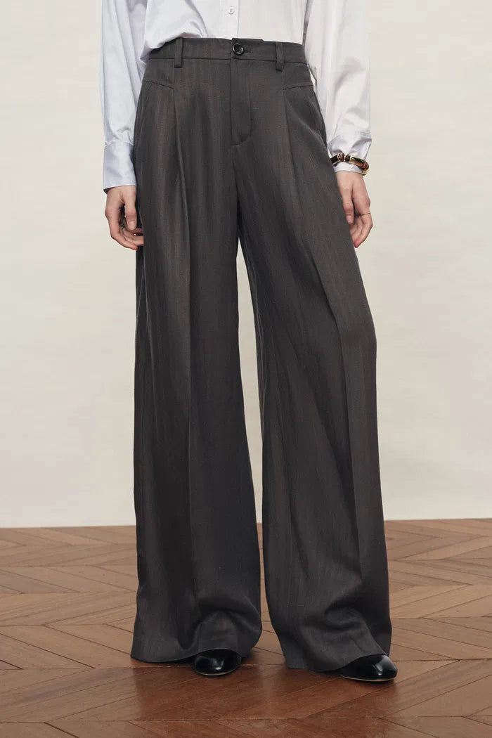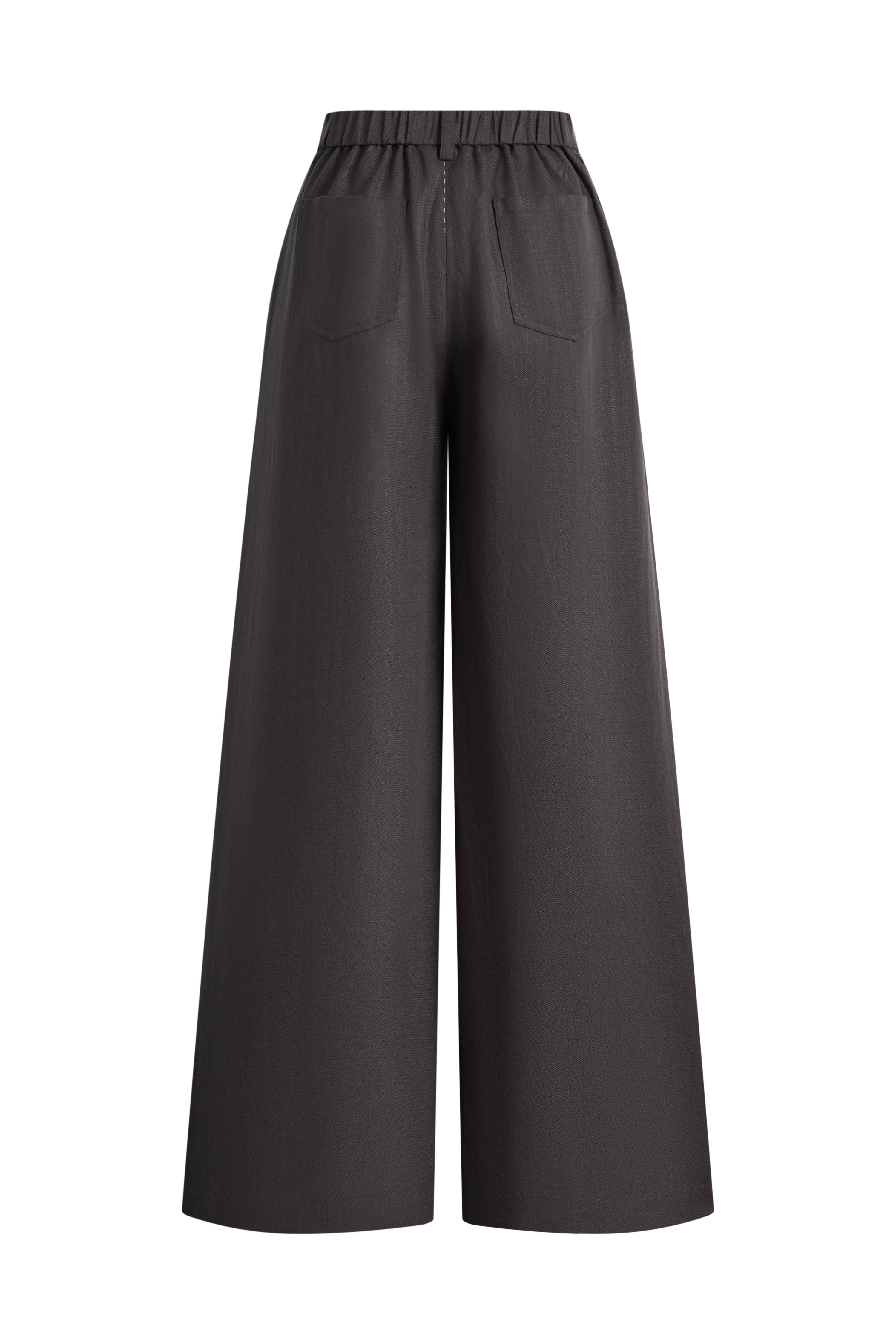 Taglio a gamba larga drappeggiato che scorre naturalmente mentre cammini.
