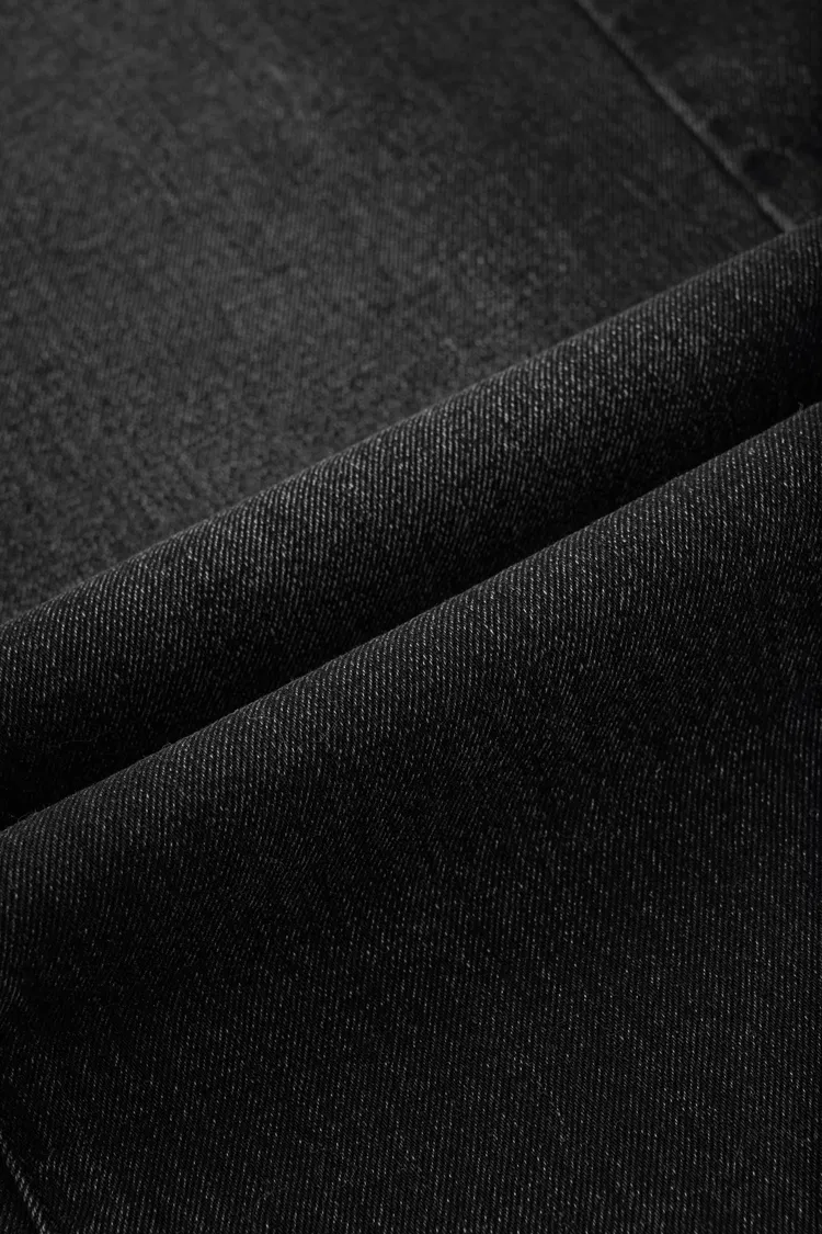 Tessuto in denim 100% cotone con lavaggio leggero che offre una mano morbida e confortevole. La struttura tridimensionale e il contrasto chiaro-scuro valorizzano le linee della gamba, creando proporzioni equilibrate in una silhouette denim retrò.